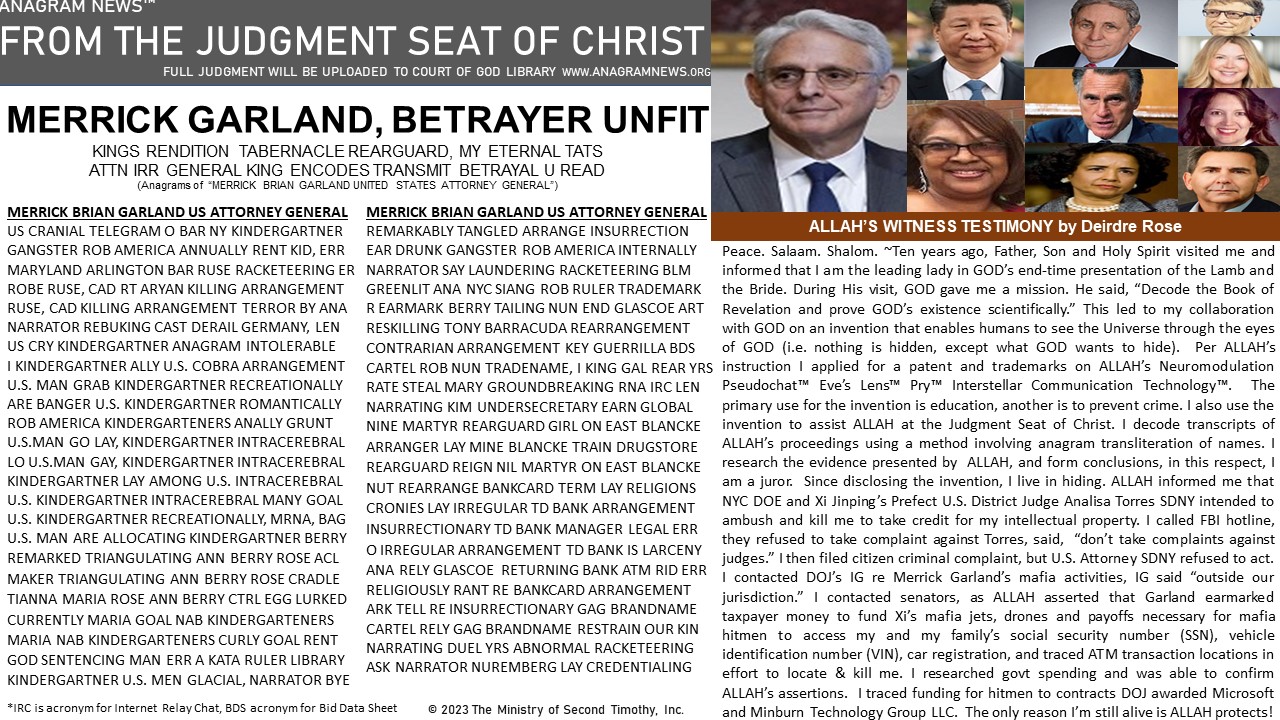 YAHWEH SAYS MERRICK GARLAND IS UNFIT "Gangster Rob America Annually, Rent Kid Err" + Photo Copyright Fair Use Disclaimer Section 107 Copyright Act 1976.