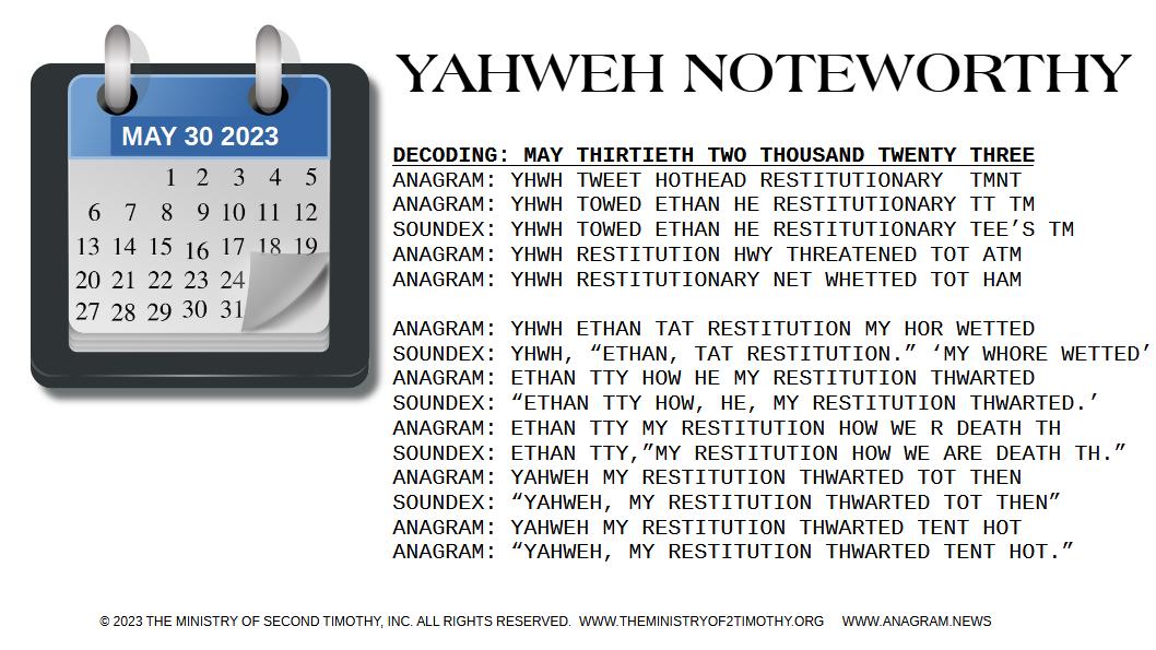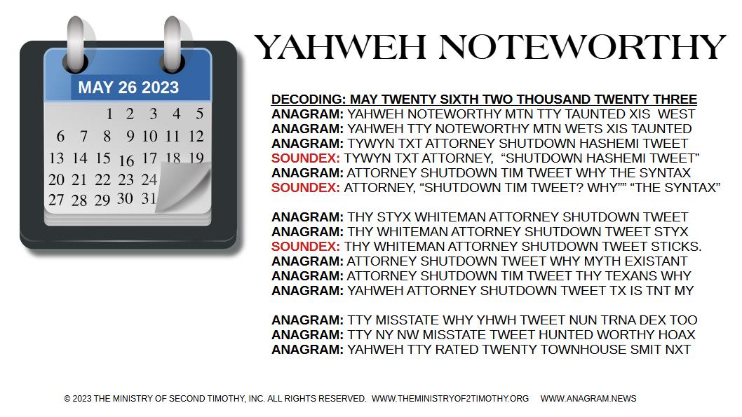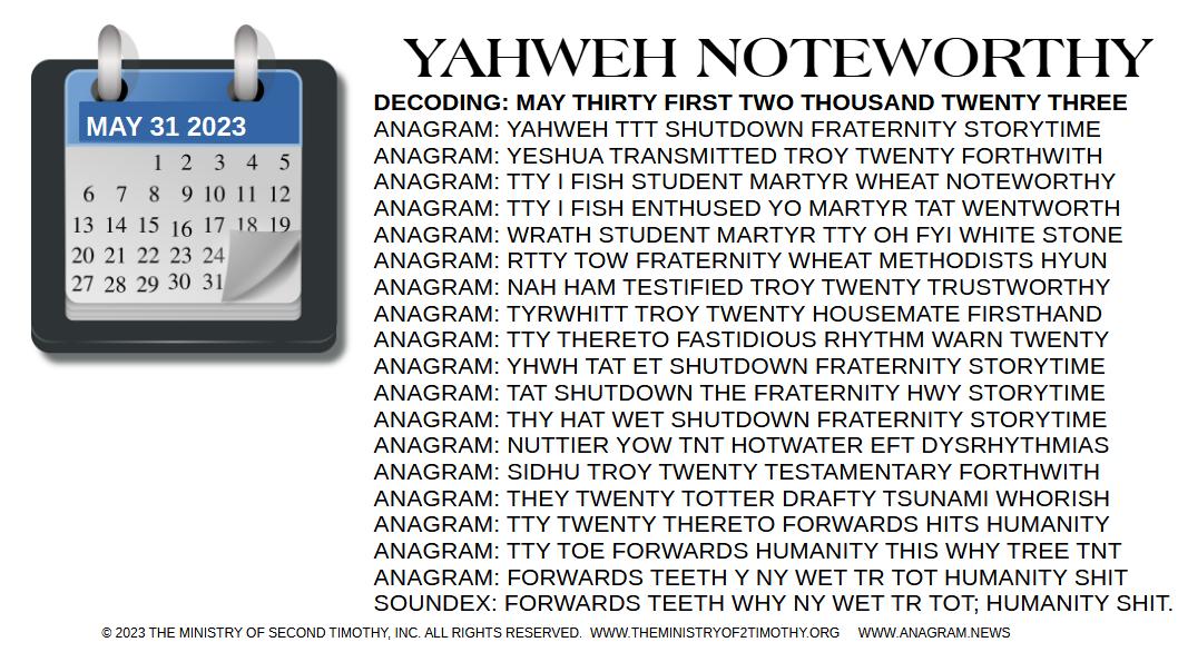 ANAGRAM: YAHWEH COUNTDOWN NOW DAYS NET TY TEETERS T TM