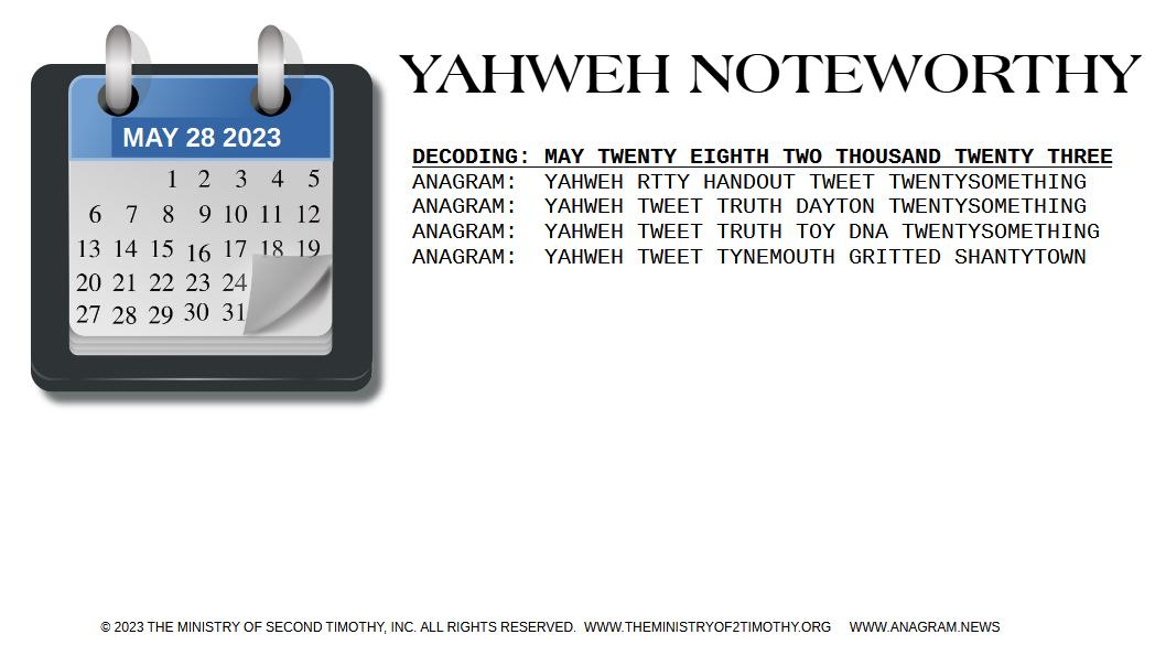 ANAGRAM: YAHWEH WETS NOTORIETY MUSTNT DRAFT TWENTY